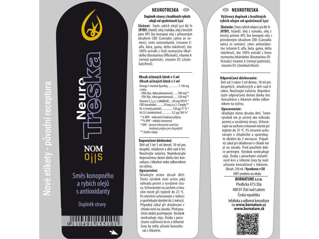 NEURO TRESKA je speciálně namíchaný potravní doplněk pro všechny od dětského věku po stáří , při častém zapomínání a roztěkanosti u dospělých. Jedná se o kombinaci oleje z tresčích jater a tuňáka, bohatého na DHA kyselinu a konopného oleje v nejvyšší dostupné kvalitě s přirozeným obsahem CBD.
